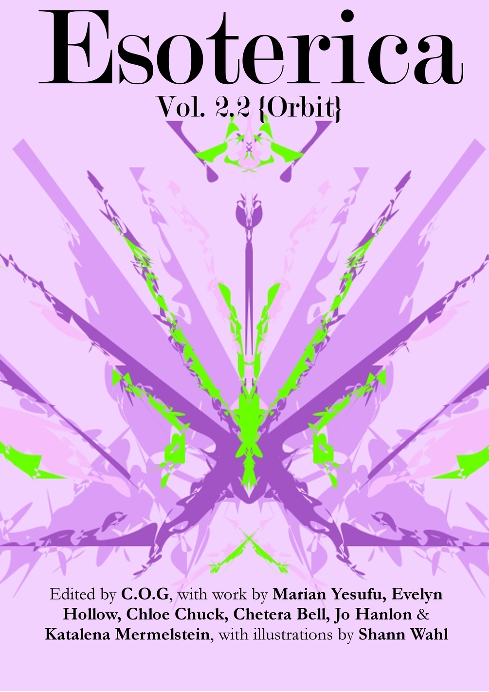 In this issue, C.O.G has taken the helm of Esoterica to bring an issue of ♀. Esoterica values a diverse range of writers bringing to our pages and kindle screens ideas that challenge, ideas that warp, ideas that fight the status quo. We have always yelled #weareesoteric and we are proud to announce this esotericism has expanded to the realms of the ♀.